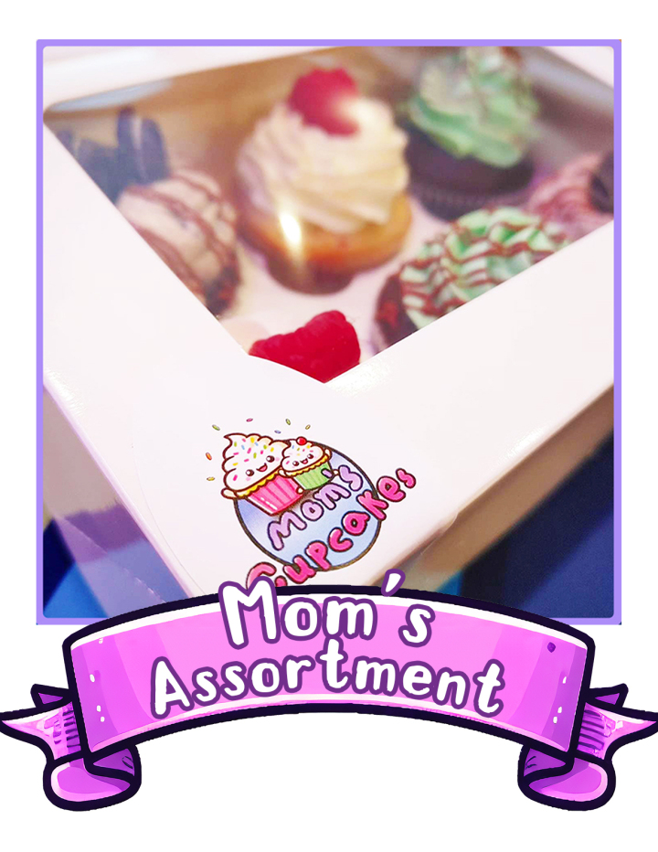 Mom's Assortment features one of each of our five daily cupcake flavors, our monthly specialty, or weekly flavors.