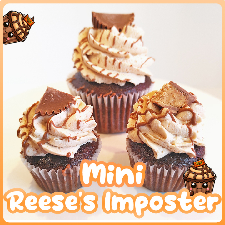 Tiny chocolate cake with peanut butter filling, crowned with velvety peanut butter frosting.